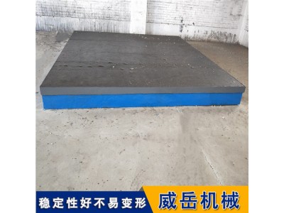 防止铸铁平板发生的变形,在吊装铸铁平板时,要用四根同样长度的钢丝绳同时挂住铸铁平板上得四个起重孔,将铸铁平板平稳吊装在运输工具上。将铸铁平板支承点垫好、垫平,每个支撑点受力均匀,整个铸铁平板平稳。铸铁平板安装时将铸铁平板板的各个支撑点用调整垫铁垫好、垫实,由技术人员将铸铁平板调整至合格精度。铸铁平板使用时要轻拿轻放工件,不要在铸铁平板上挪动比较粗糙的工件,以免对铸铁平板工作面造成磕碰、划伤等损坏。铸铁工作台应安装在通风、干燥的环境中,并远离热源、有腐蚀的气体、有腐蚀的液