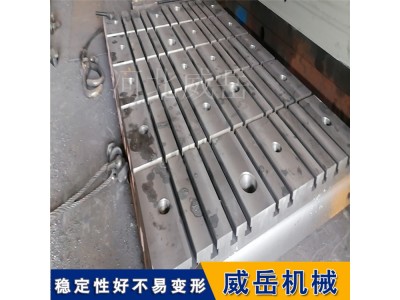 设计规划:依据平台的实际使用需求,无误确定 T 型槽的位置、尺寸及数量。例如,在机械装配中,需根据待装配零部件的固定方式、操作流程等因素来设计 T 型槽布局,以保障工件固定稳固且操作便捷。同时,还要兼顾平台整体结构强度,避免因开槽过多或位置不合理削弱平台承载能力。